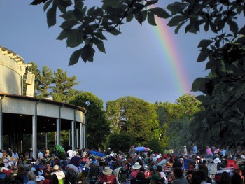 Sometimes the best seats are on the lawn at Tanglewood as this intense rainbow stunned viewers of A Prairie Home Companion last Saturday, June 30.