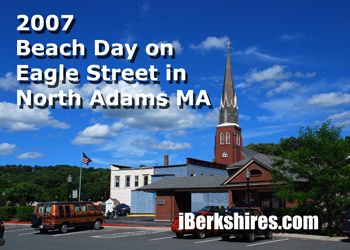 North Adams filled Eagle Street with sand, sculptures and children for Beach Day. [Photos by Paul Guillotte]