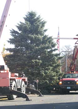 North Adams installed spruce trees at each end of Main Street on Wednesday, Nov. 14, to prepare for the coming holidays.