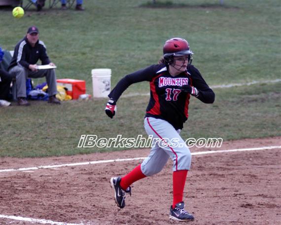 Kendra Hinkell's two-run homer in the top of the sixth inning broke a 1-1 tie and lifted the Drury softball team to a 6-1 win over Mount Greylock on Monday afternoon. (Photos by Chris Piscioneri)