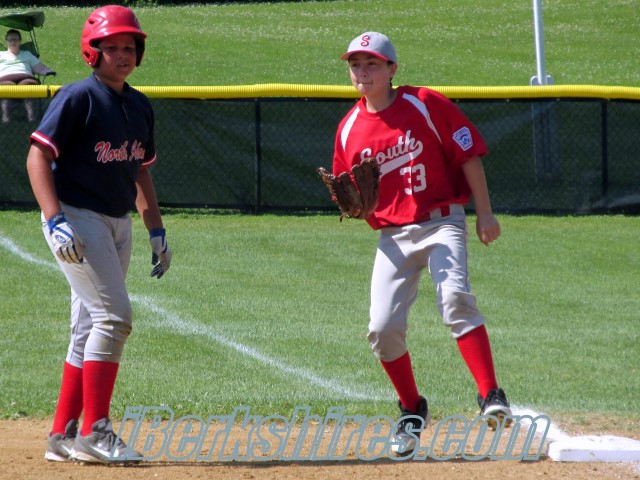 Andrew Watkins hit a three-run home run and a double and drove in five runs to lead Pittsfield South to a 23-4 win over North Adams in the District 1 10 - 11-year-old Little League semi-finals on Saturday.