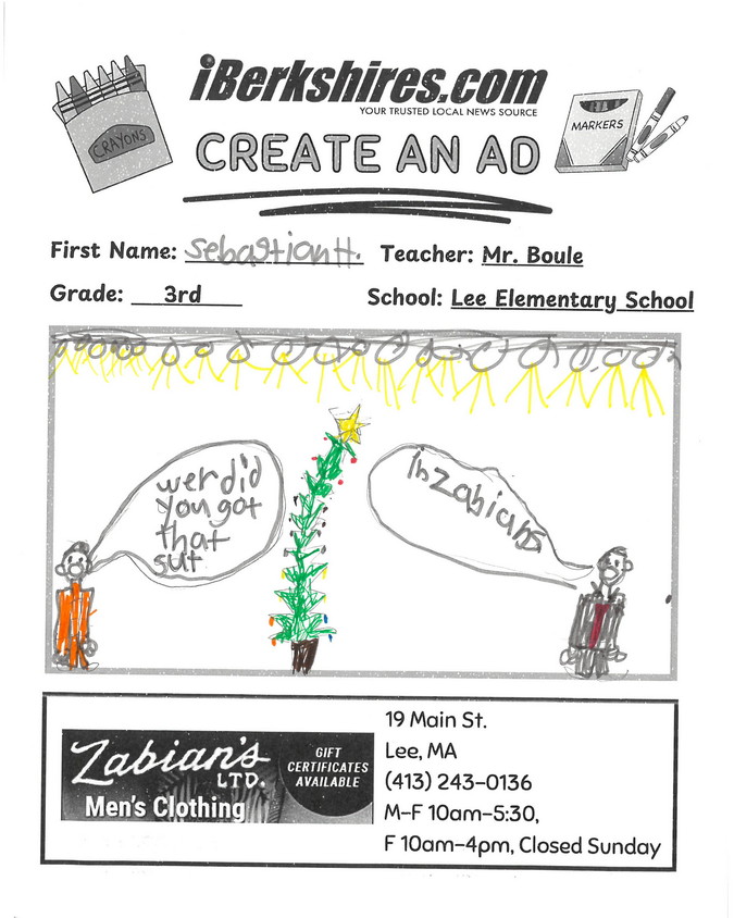 Third-grade students in Brandon Boule's art class at Lee Elementary School showcased a diverse selection of men's apparel at Zabian's Clothing, located at 19 Main St, Lee MA