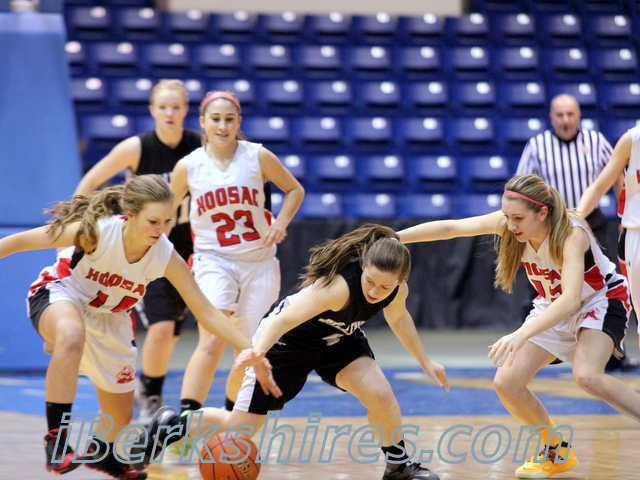 3-11-14 Megan Rodowicz scored 13 points to lead three Hoosac Valley players in double figures as the Hurricanes defeated Bellingham, 54-52, in the Massachusetts Division 3 state semi-finals on Tuesday at the Mass Mutual Center. (Photos by M. Alvarez)