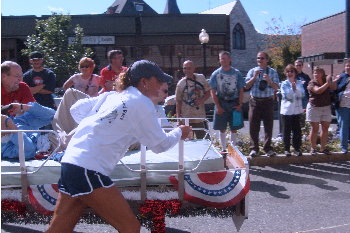The Bronco Entertainment team won the first annual Charity Bed Race on Saturday. Seven teams competed by pushing beds down Main Street to benefit Northern Berkshire Health Systems.