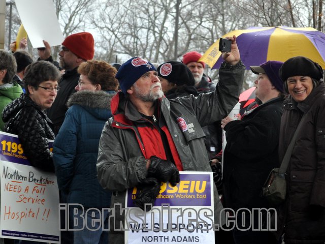 Union members and supporters of North Adams Regional Hospital rallied at the front entrance as the last patients were escorted out. [photos by J. Guerino]