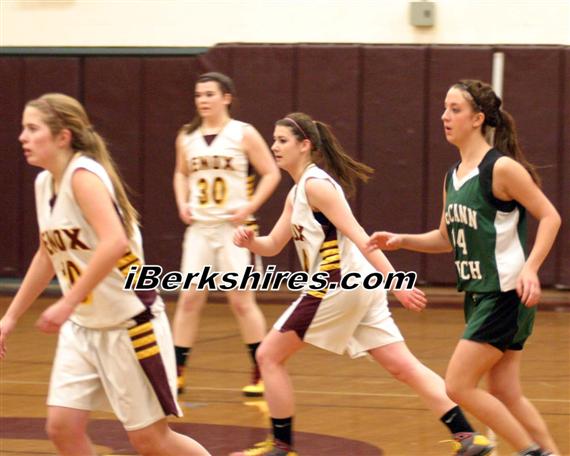 McCann (No. 12) puts away Lenox, No. 5, in the final quarter. Outscoring Lenox 22-10 in the final quarter, McCann heads on to the next round in the Western Mass Division III playoffs. They will play at Ware on Friday at 7 p.m. (Photos by M. Alvarez)
