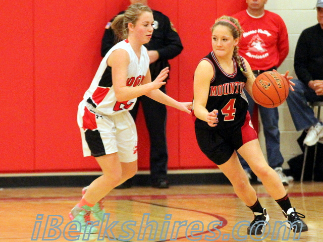 2/27/14 Emily Rosse scored 22 points and grabbed 11 rebounds, and Fallon Field scored 15 to lead Hoosac (20-1) to a 71-39 victory and a sectional semi-final next Tuesday against third-seeded Granby. (Photos by M. Alvarez)