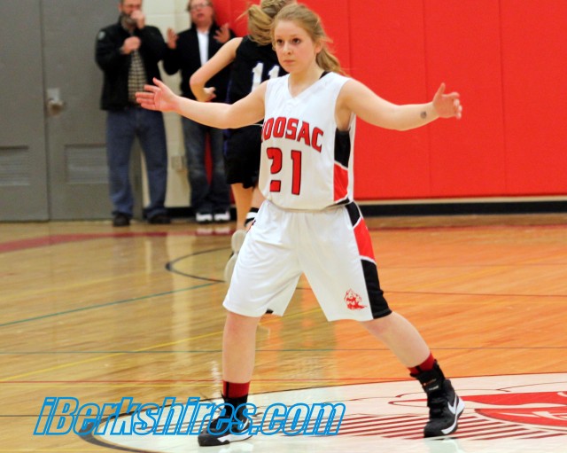 The #7 Hurricanes advanced to the quarterfinals of the Western Mass Division II girl's tournament on Tuesday night at Hoosac Valley High School with a 49-36 win over #10 Palmer. (Photos by M. Alvarez)
