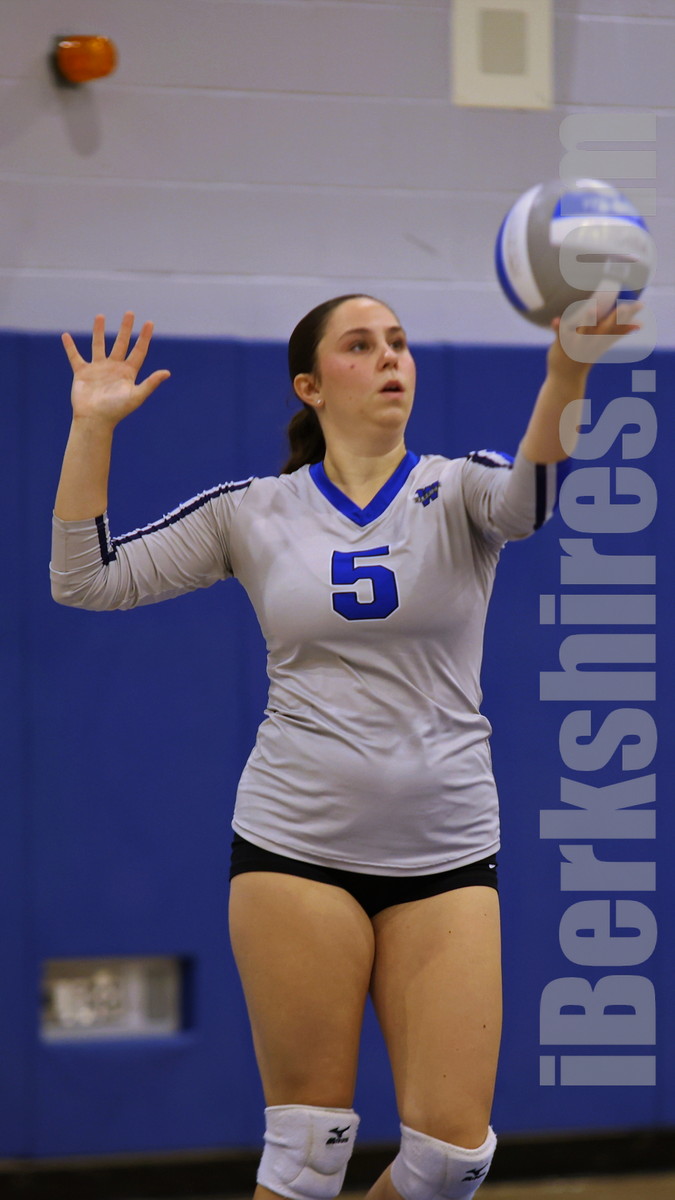 Melaina Haczela passed out 28 assists Thursday to lead the Wahconah volleyball to a four-set win over Frontier. Haczela served three aces in the 25-19, 25-20, 22-25, 25-19 victory.