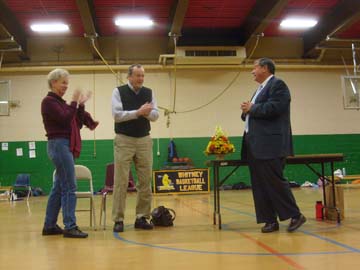 Margaret and Myles Whitney were honored at Conte Middle School on Monday night for the many years they contributed to making basketball a reality for hundreds of young girls. The North Adams Girls Basketball League was renamed the Whitney Basketball Leagu