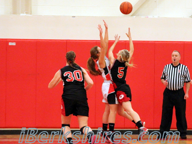 2/27/14 Emily Rosse scored 22 points and grabbed 11 rebounds, and Fallon Field scored 15 to lead Hoosac (20-1) to a 71-39 victory and a sectional semi-final next Tuesday against third-seeded Granby. (Photos by M. Alvarez)