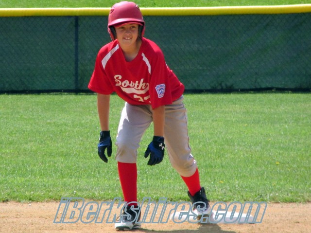 Andrew Watkins hit a three-run home run and a double and drove in five runs to lead Pittsfield South to a 23-4 win over North Adams in the District 1 10 - 11-year-old Little League semi-finals on Saturday.