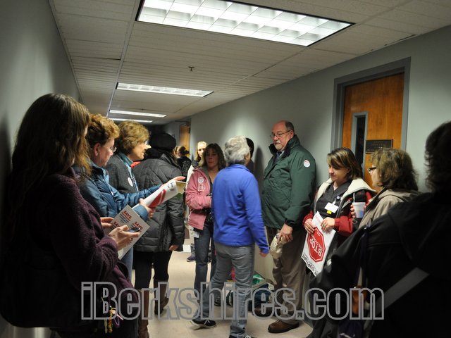 Union members and supporters of North Adams Regional Hospital rallied at the front entrance as the last patients were escorted out. [photos by J. Guerino]