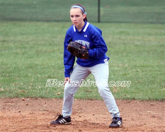 Kendra Hinkell's two-run homer in the top of the sixth inning broke a 1-1 tie and lifted the Drury softball team to a 6-1 win over Mount Greylock on Monday afternoon. (Photos by Chris Piscioneri)
