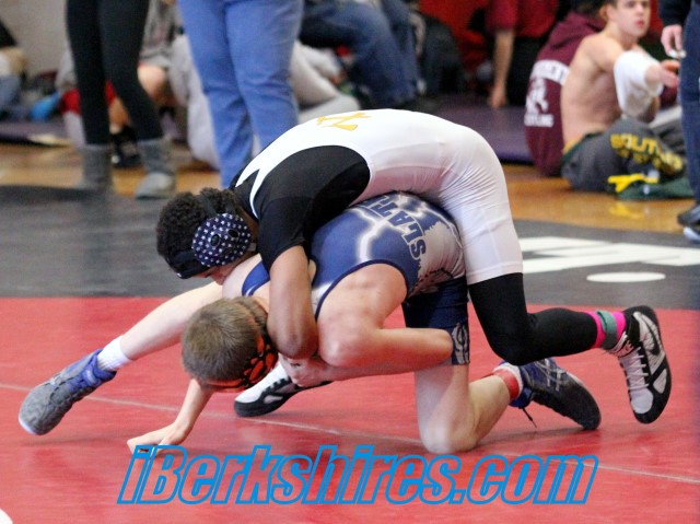 Fourteen Berkshire County wrestlers into semi-finals at 21st Mountie Invitational at Mount Greylock on Saturday. Monument Mountain leads county contingent with five in semis. Host Mounties have four. Taconic has three; Mt. Everett two. (Photos by M. Alvar