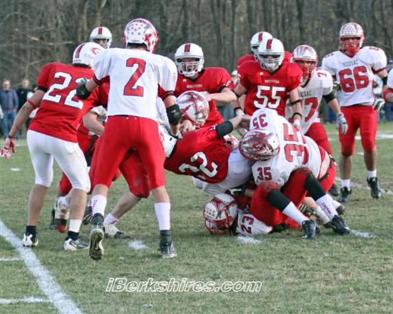 The Mounties pounded the Hoosac Valley Hurricanes at home on Saturday to win the Berkshire County championship 46-6. [Photos by M. Alvarez]