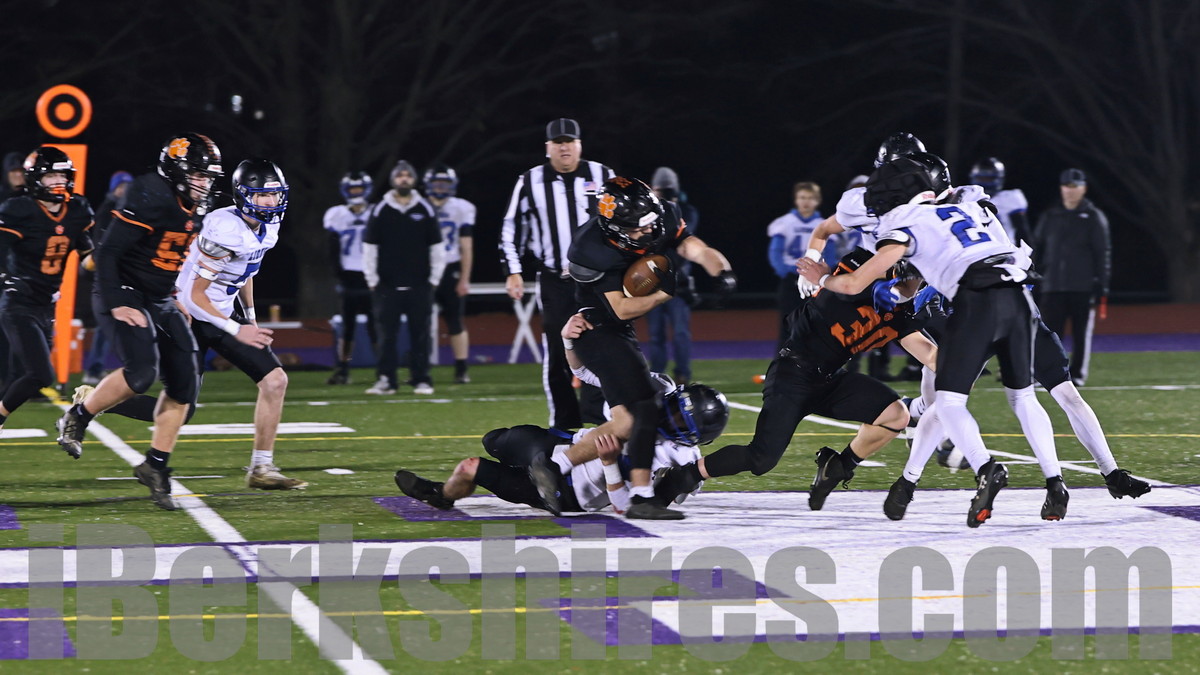 Dominick Renzoni rushed for 302 yards and four touchdowns Friday to lead second-seeded West Boylston to a 42-22 win over Lee in the semi-finals of the Division 8 State Tournament.