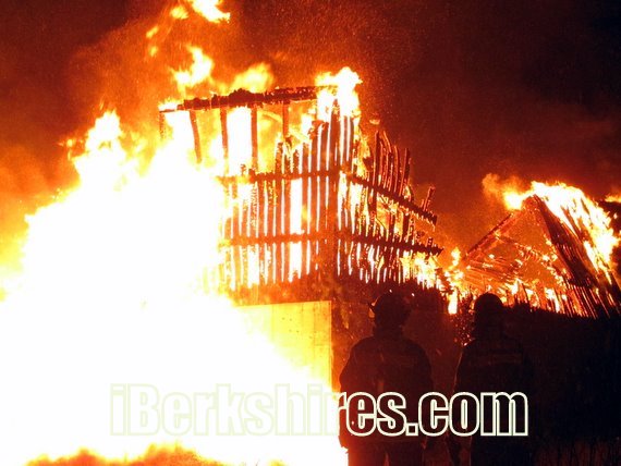 An Eagle Lumber Co. warehouse on Robillard Road in Stamford, Vt., was consumed by flames early Saturday morning.