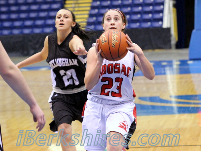 3-11-14 Megan Rodowicz scored 13 points to lead three Hoosac Valley players in double figures as the Hurricanes defeated Bellingham, 54-52, in the Massachusetts Division 3 state semi-finals on Tuesday at the Mass Mutual Center. (Photos by M. Alvarez)