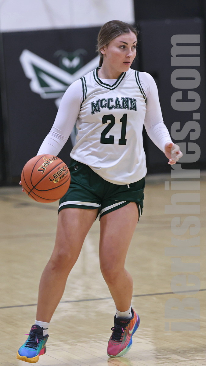 Aiden Champney Monday scored 16 points to lead the McCann Tech girls basketball team to a 56-19 win over Hampden Charter.