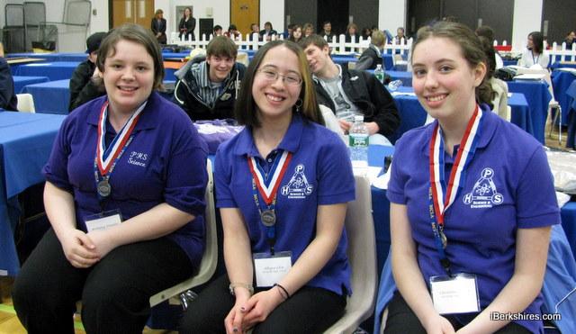 Pittsfield High School students Brittany Douglas, left, Allegra Chin and Christine Osimo won the Navy Medal. |