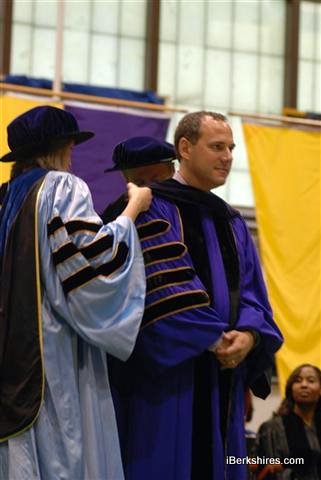 Sunday's commencement marked notable firsts and lasts; Adam F. Falk conferred degrees for the first time after becoming the Williams College president on April 1, while Berkshire County Sheriff Carmen C. Massimiano Jr. led the traditional procession for the last time. After 32 years as county sheriff, Massimiano is not running for re-election this year.
