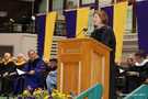 During the ceremony, 525 students received Bachelor of Arts degrees, while master's degrees were awarded to 14 students in the History of Art program and 30 from the Center for Development Economics. The proceedings were moved from West College Lawn to La