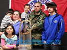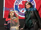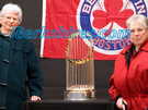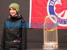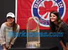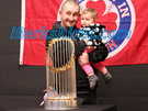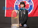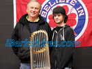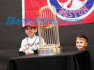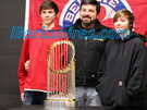 Young and old lined up to have their pictures taken with the World Series trophy on Monday at Greylock Bowl & Golf.