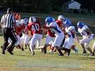 Mount Greylock Brodie Altiere makes a fourth-down stop with :38 left to clinch 18-13 win over Drury on Friday evening.