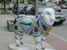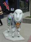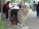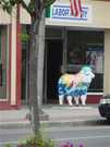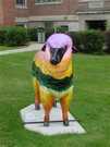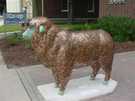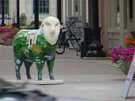 These colorful sheep are grazing around the downtown Pittsfield area.