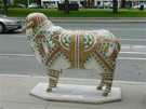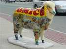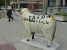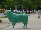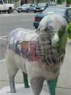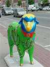 These colorful sheep are grazing around the downtown Pittsfield area.