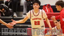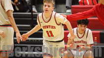 Joey Abderhalden recorded a double-double, and the Lee boys basketball team Monday came from behind to earn a 59-56 win over Mount Greylock.