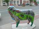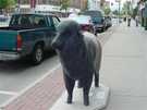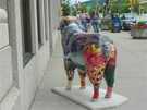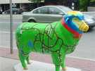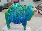 These colorful sheep are grazing around the downtown Pittsfield area.