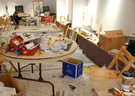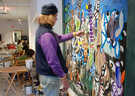 About 18 artists gathered at the MCLA Gallery 51 Jan. 25-30 to create the collage art featured during the gallery's "100 Hours In the Woodshed" art exhibit. [Photos by Paul Guillotte]