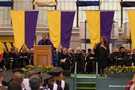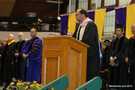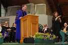 During the ceremony, 525 students received Bachelor of Arts degrees, while master's degrees were awarded to 14 students in the History of Art program and 30 from the Center for Development Economics. The proceedings were moved from West College Lawn to La
