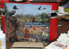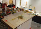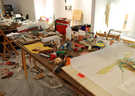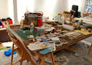 About 18 artists gathered at the MCLA Gallery 51 Jan. 25-30 to create the collage art featured during the gallery's "100 Hours In the Woodshed" art exhibit. [Photos by Paul Guillotte]