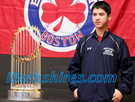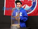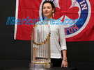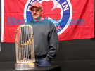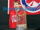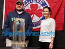 Young and old lined up to have their pictures taken with the World Series trophy on Monday at Greylock Bowl & Golf.