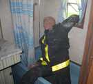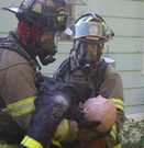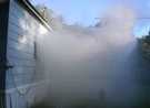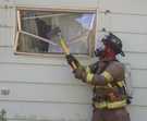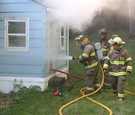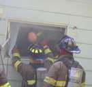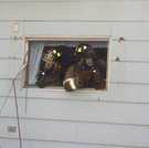 Clarksburg volunteer firefighters practiced rescue and smoke ventilation skills during a July 13 drill conducted at a property owned and donated for drilling purposes by North Adams resident and builder David Moresi. [Photos by Sue Bush]