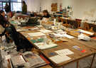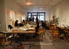About 18 artists gathered at the MCLA Gallery 51 Jan. 25-30 to create the collage art featured during the gallery's "100 Hours In the Woodshed" art exhibit. [Photos by Paul Guillotte]