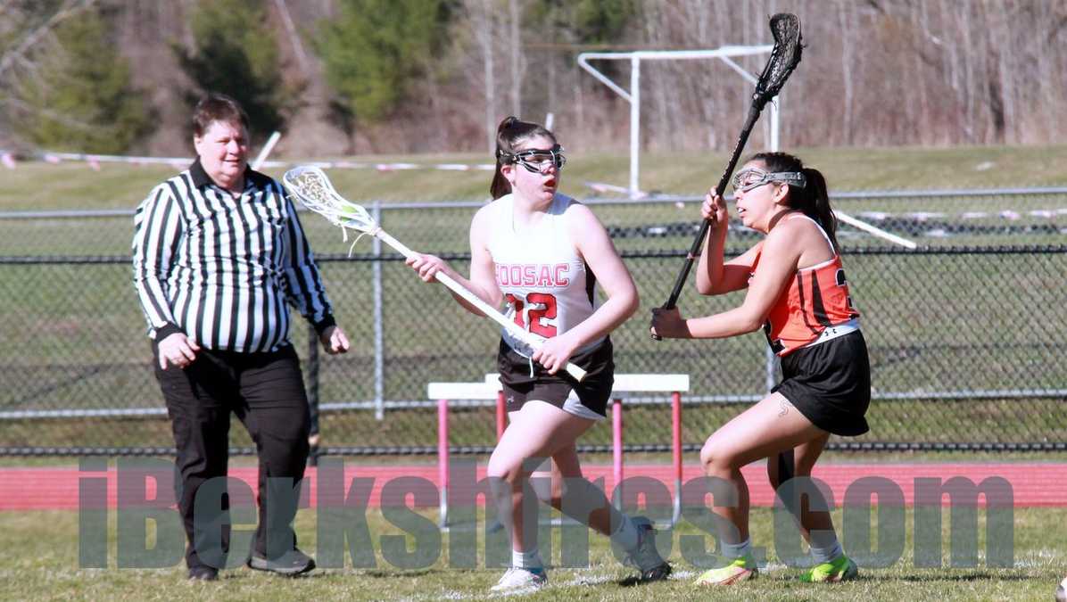 After three blowout wins to start the season, the Hoosac Valley girls lacrosse team needed to be firing on all cylinders to get past Lee on Friday afternoon. The Hurricanes got five goals from Emma Meczywor in a 7-4 win, but it also got big contributions