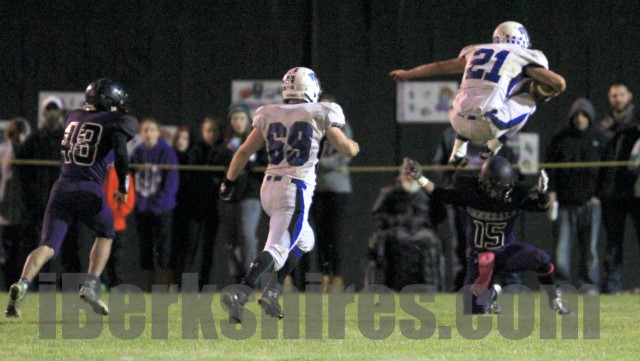 Early in the third quarter of Friday's football game against Pittsfield, the 5-foot-9 senior took a handoff from quarterback Will Genaway, went over right tackle, made a bee-line for the end zone and hurdled over a would-be tackler on the way to a 19-yard touchdown to give Wahconah a 22-14 lead on the way to a 34-22 win at Wahconah Park.