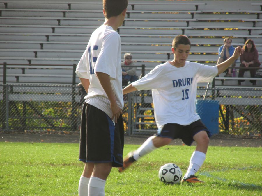 It stayed there for 26 minutes before Wahconah cashed in on a direct free kick awarded just outside the 18-yard box early in the second half. The initial signal was for an indirect free kick, and there was some confusion on the Drury defense when Boino deftly touched the ball around the four-man wall and into the corner of the goal with the first touch.