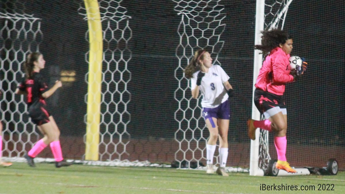 In a game where early goals were the norm, Mount Everett had the first strong chance of the extra session when Emily Steuernagle dribbled through several defenders to bring the ball in from midfield and create space for herself just outside the 18. But her shot deflected off the nearside post and over the goal line.”