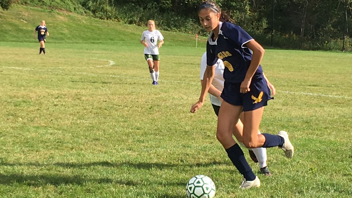 Most of the chances in the first half came from Mount Everett’s offense, but the Eagles could not solve freshman keeper Sarah Fortini, who made nine of her 17 saves before half-time.