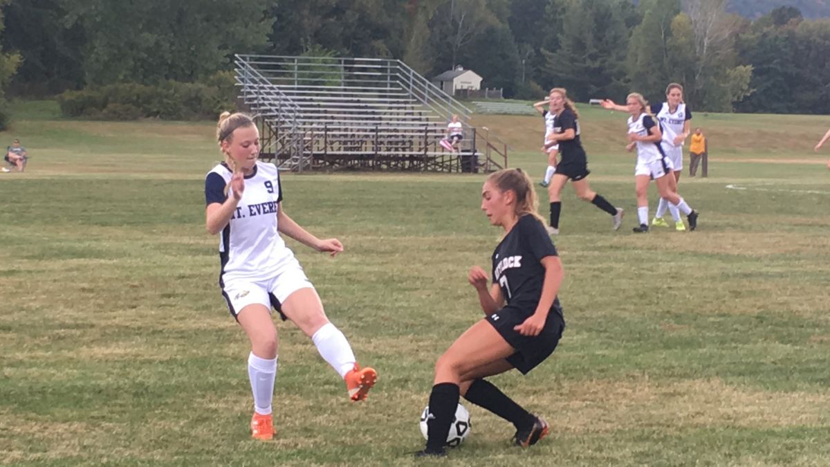 Mount Everett keeper Emma Goewey left the game in the 38th minute after making four saves. Defender Madeline Soudant jumped into the goal and played a solid second half, stopping six shots while allowing a goal.