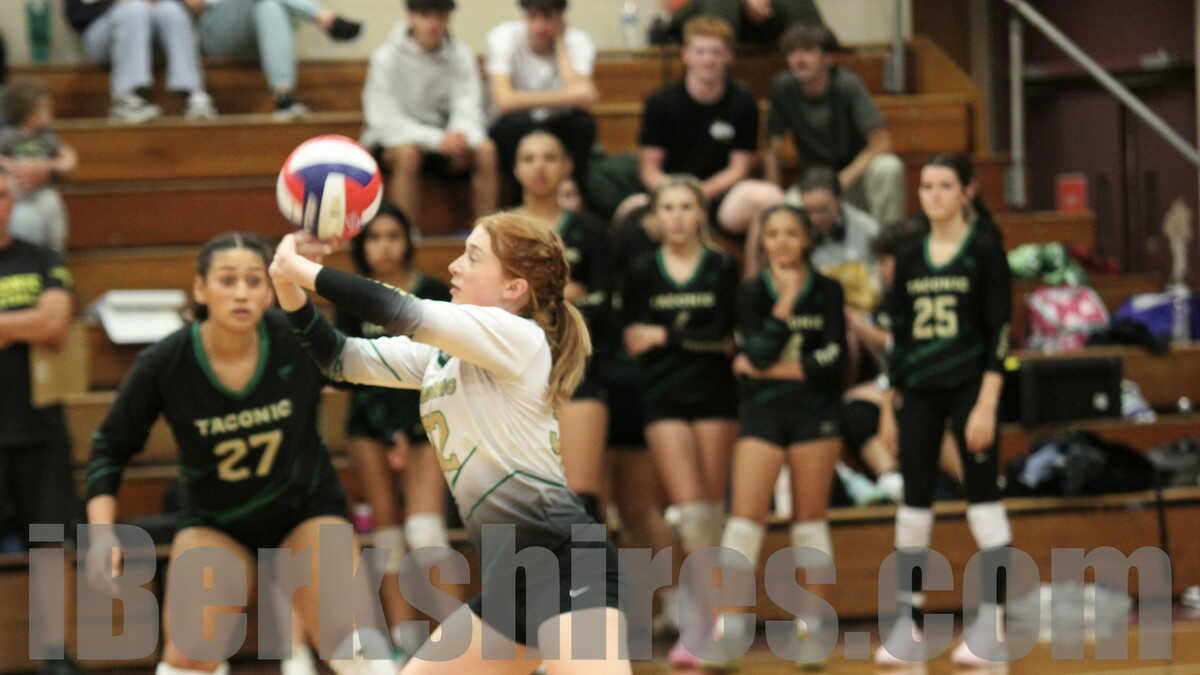 Sophie Aubin pulled up 10 digs Monday as the Taconic volleyball team beat Monument Mountain in three sets.
