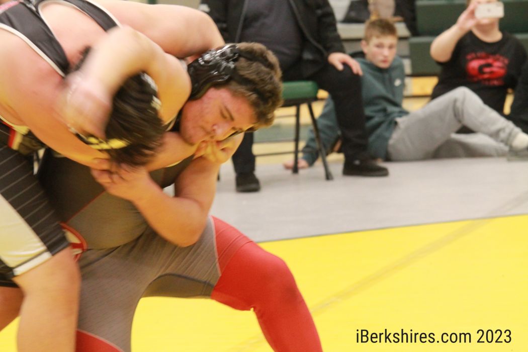 The last match of the day also was a highlight for the county as Mount Greylock’s Hunter Marceau earned his first career championship and the Mounties’ first tournament title of the winter with a first-period pin in the 285-pound final.