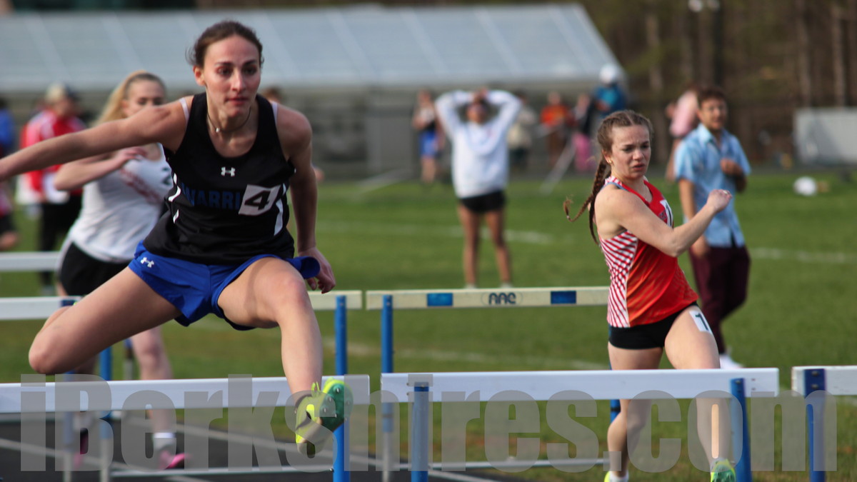 100 hurdles: 1. Kathryn Perrone, Wah, 16.60; 2. Amiracle Tatro, HV, 18.68; 3. Lindsay Robare, HV, 20.85.