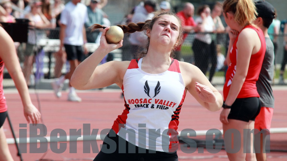 CHESHIRE, Mass. – The Hoosac Valley girls track team Wednesday took 23 out of a possible 27 points in the throws to anchor the team to a 75.25-65.75 win over Pittsfield.