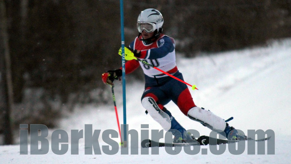 The Monument Mountain girls took first in their team competition in the giant slalom event behind Paige Lussier and Loghan Strzepa, who finished third and fourth, respectively.